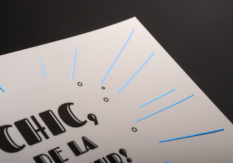 2. Maîtrise du Letter Press / Thermorelief : Ces techniques (Débossage ou relief) ont leurs propres contraintes (formats dédiés, pas de pelliculage…). Nous vous guidons et concevons le design adapté.