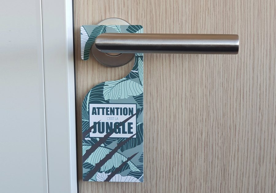 - Quadrichromie Recto/Verso (4/4 CMJN) : C’est le standard pour ce produit. Les deux faces sont imprimées en couleur, indispensable pour les accroche-portes (ex: Recto « Libre », Verso « Occupé »).