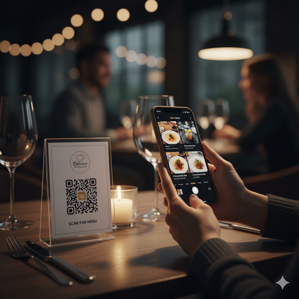 • Un QR Code sur chaque table mène directement à votre menu digital, facile à mettre à jour et respectueux de l’environnement.