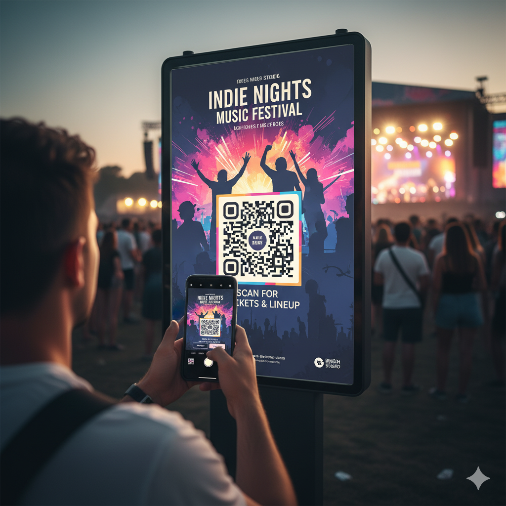 • Sur les affiches d’un concert ou d’une exposition, il permet d’acheter des billets, de voir la programmation ou d’accéder à la billetterie en ligne.